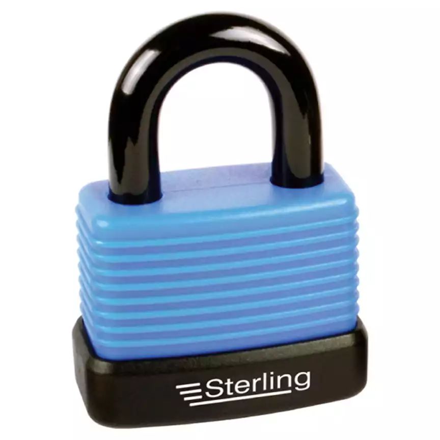 48mm weather proof double locking padlock with corrosion resistant aluminium body and hardened steel chrome plated shackle. Padlock has a thermoplastic weather proof jacket and a protective key hole cover. Brass cylinder. Supplied with 2 keys.