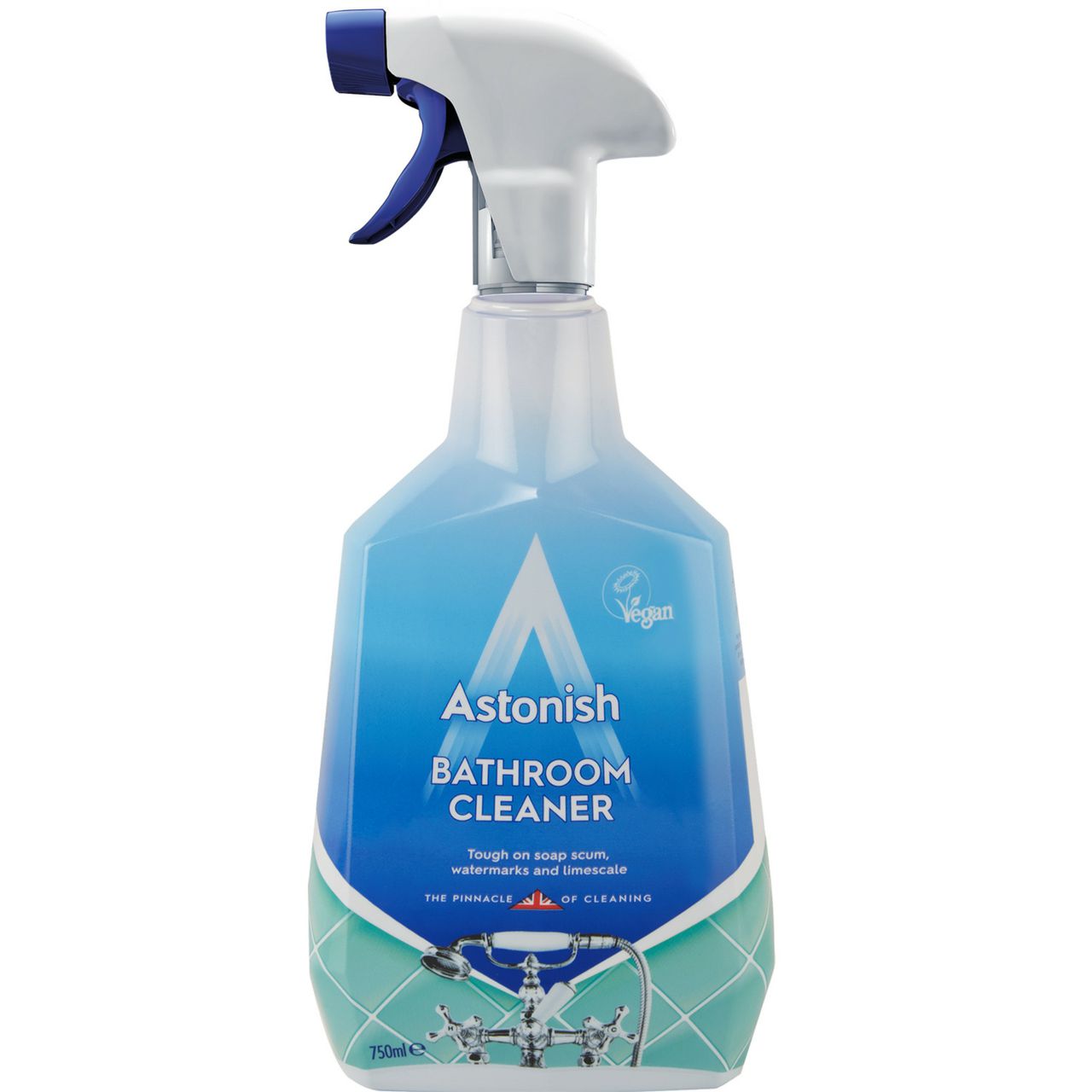 Achieve a sparkling bathroom with Astonish products bathroom cleaner. It provides effective use on chrome taps, shower heads, ceramic tiles and other non-porous surfaces. It’ll aid the removal of limescale, soap scum, built up dirt and stains with the simple spray on- rinse off action.